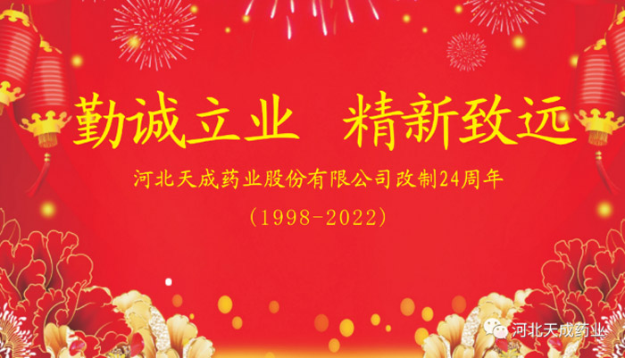 24載風雨兼程,這一路走來,既有披荊斬棘的拼搏汗水,也有百折不撓的奮斗歷程,更有碩果累累的豐收喜悅,多年的勵精圖治,構建起一家集藥物研發、生產、銷售為一體的集團性制藥企業,天成藥業現在是國家高新技術企業、中國企業成長百強企業、河北省醫藥工業十強企業、河北省戰略性新興產業百強企業、科技先導型企業、中國制造業隱形冠軍等等,這無不凝聚了新老天成人無盡的智慧和心血。