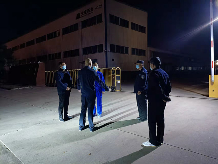常務副總經理王顥作為此次封控管理的總指揮,更是多次強調生產生活安全問題。他在安監部負責人呂斌和門衛保安班長楊師傅的陪同下,不定時抽查二、三廠區各項安保制度落實情況。他明確指出,處罰不是目的,目的是警示大家要敬畏安全,要顧全大局,在安排好生產工作的同時,穩定員工情緒,精心操作、規范作業,確保營造安全和諧的勞動大環境。