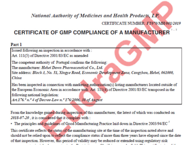 河北道恩藥業(yè)獲得無(wú)菌注射劑生產(chǎn)線歐盟GMP證書(shū)