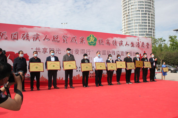5月16日,在第三十一次“全國助殘日”到來之際,滄州市殘疾人聯合會協同新華區、運河區、滄縣殘疾人聯合會共同舉辦了,以“鞏固殘疾人脫貧成果,提高殘疾人生活質量”為主題的宣傳活動。會上,河北天成藥業股份有限公司常務副總經理王顥代表公司領取了,滄州市殘疾人聯合會授予的“十佳愛心助殘企業”榮譽稱號。