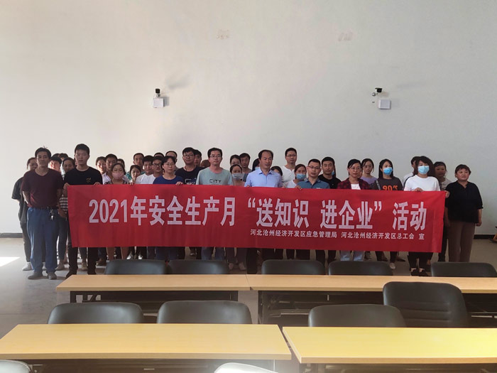 日前,滄州經(jīng)濟開發(fā)區(qū)應(yīng)急管理局聯(lián)合滄州經(jīng)濟開發(fā)區(qū)總工會啟動了送“送知識 進(jìn)企業(yè)”活動。6月17日上午,項目組來到公司三分廠培訓(xùn)室開展活動。滄州經(jīng)濟開發(fā)區(qū)應(yīng)急管理局李延科長、滄州經(jīng)濟開發(fā)區(qū)總工會工作人員賈起新出席活動,滄州渤海專修學(xué)院李振濤講師進(jìn)行授課。