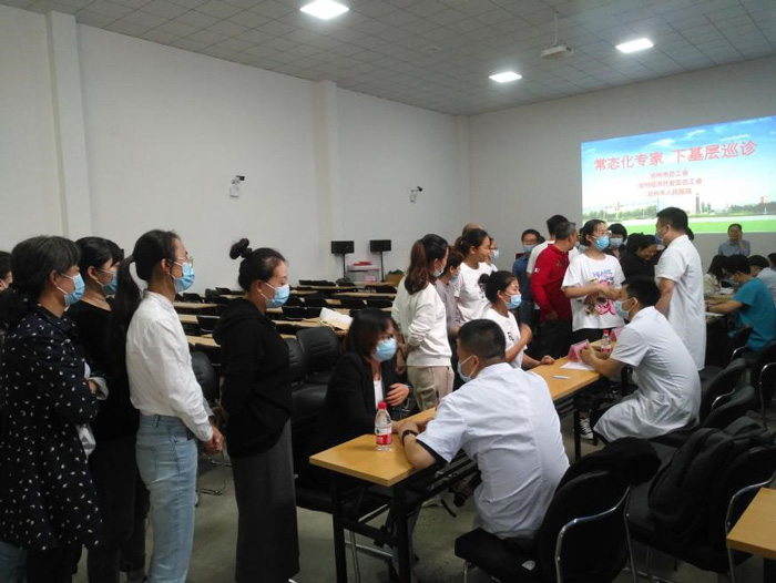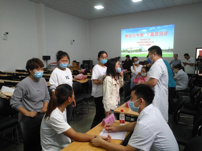 活動(dòng)開始,滄州市總工會(huì)田瑩副科長(zhǎng)發(fā)表講話,她指出,滄州市總工會(huì)通過(guò)建設(shè)“職工健康生活室”,聯(lián)合滄州市人民醫(yī)院定期下基層開展健康大課堂、義診等活動(dòng),為職工送去科學(xué)的營(yíng)養(yǎng)保健指導(dǎo),對(duì)患病的職工提出相應(yīng)的治療建議,既滿足了職工健康的新需求,又使之成為了關(guān)心關(guān)愛職工健康的新舉措。她強(qiáng)調(diào)“常態(tài)化專家下基層巡診”活動(dòng)將會(huì)持續(xù)搞下去,讓職工參與度更高,惠及更多的職工。